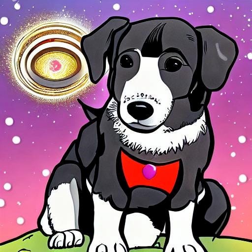 Đây là hình ảnh do AI tạo ra. Chúng tôi đã yêu cầu một chú chó hoạt hình trên thiên đường đeo vầng hào quang. Chúng tôi không biết điều gì đang diễn ra trong bức ảnh này.